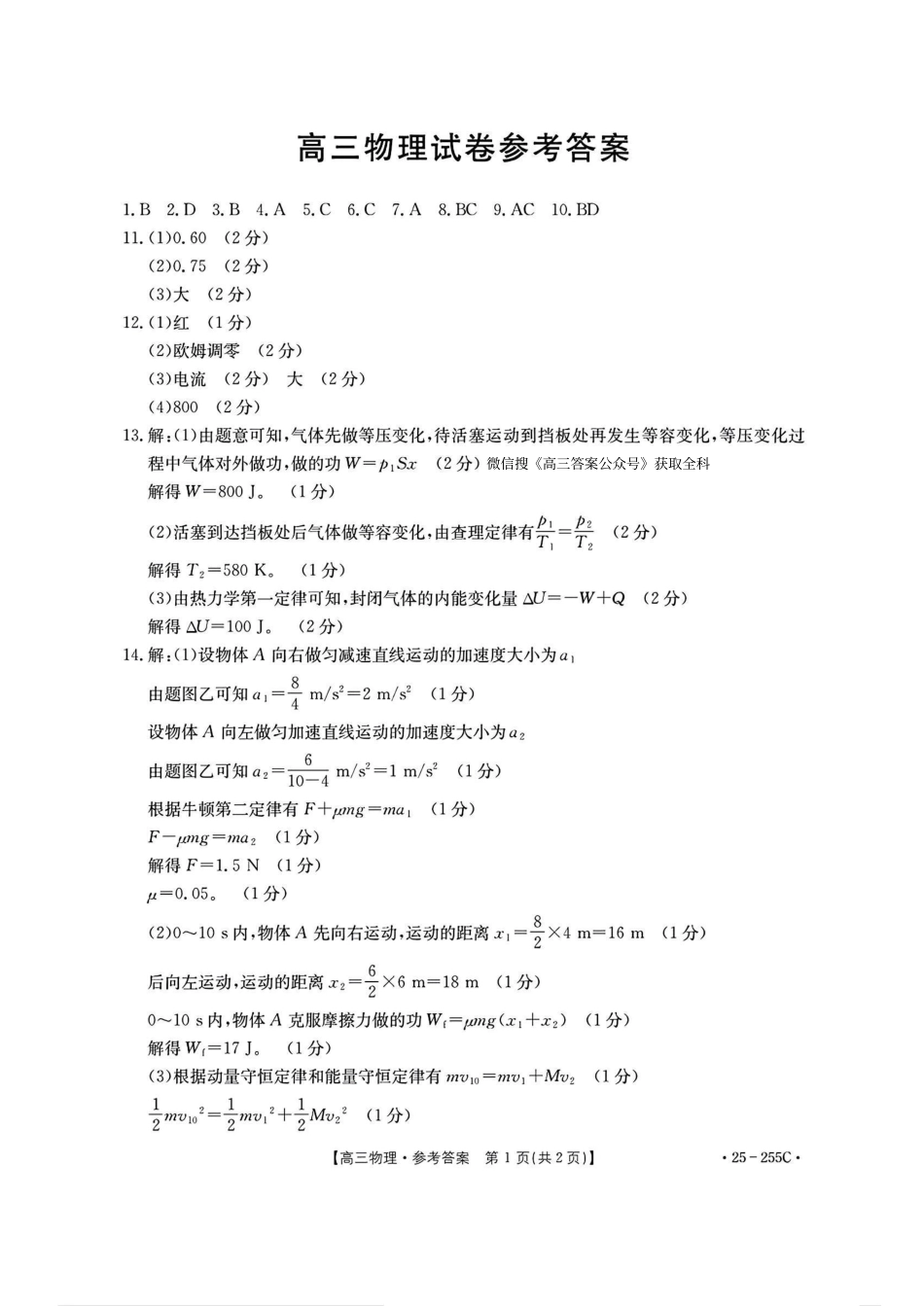 2025甘肃金太阳255C陇南天水高三1月大联考-物理答案.pdf_第1页