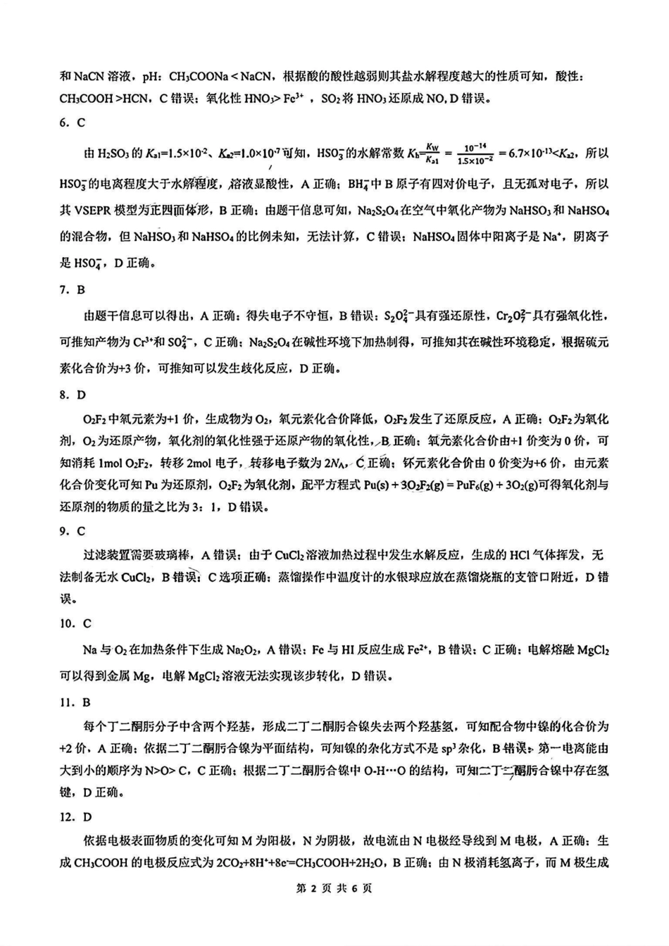 安徽省淮南市、淮北市2025届高三上学期第一次质量检测化学答案.pdf_第2页