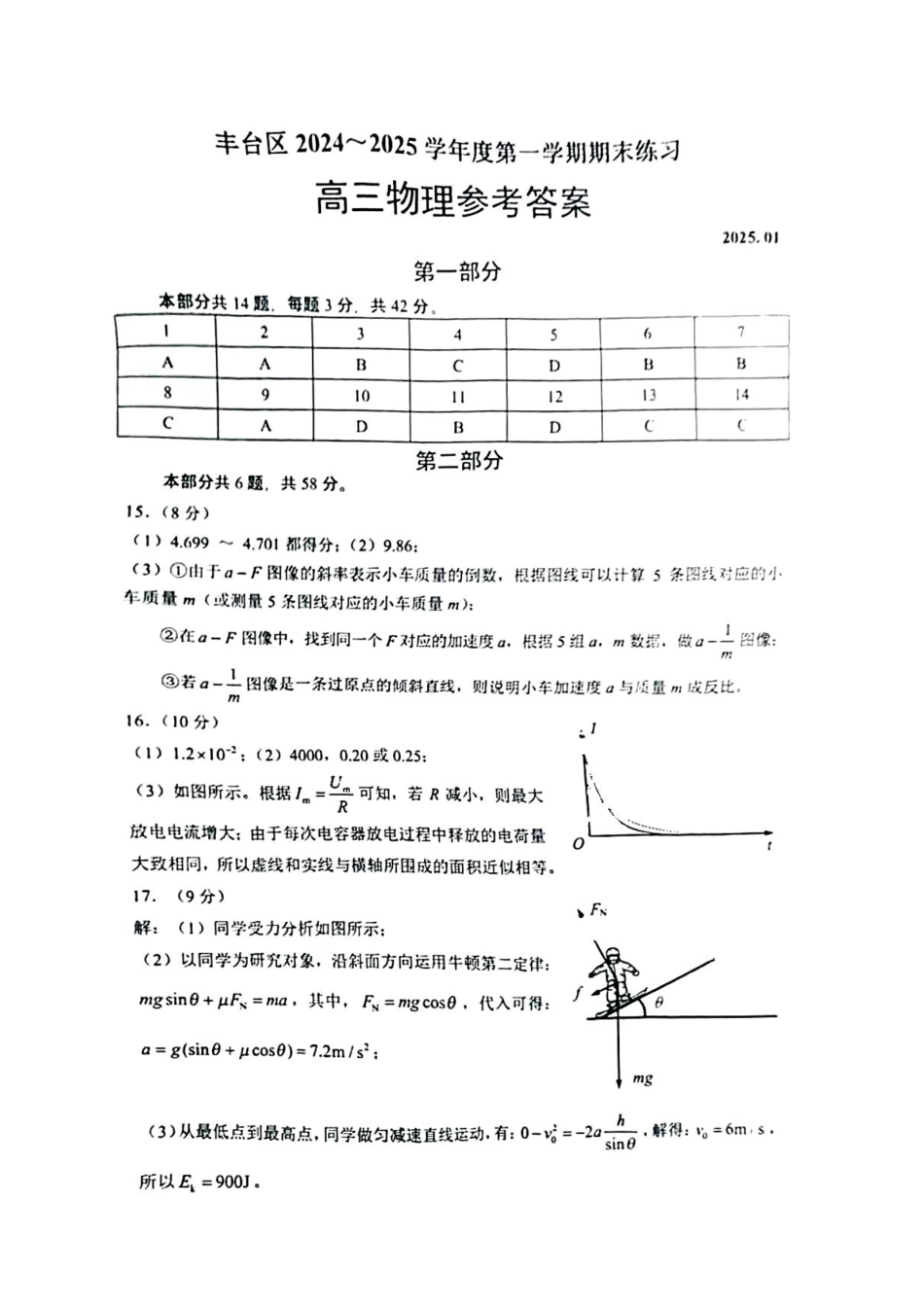 北京市丰台区2024-2025学年高三上学期期末练习物理答案.pdf_第1页