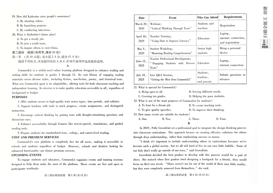 河北省唐山市2024-2025学年高三上学期1月期末考试  英语含答案.pdf_第2页