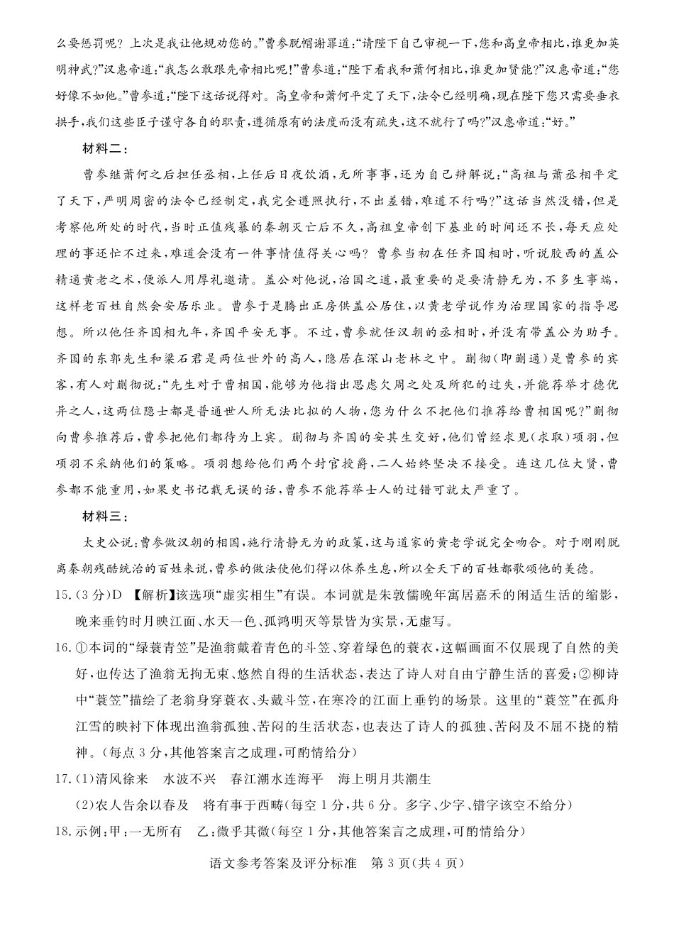 河北省张家口市2024~2025学年高三上学期期末教学质量监测语文答案.pdf_第3页