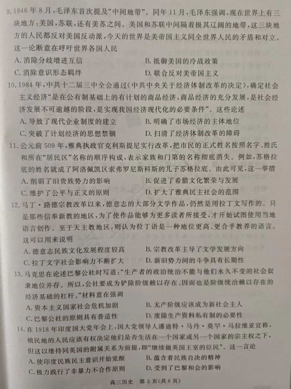 河北省张家口市2024-2025学年高三上学期期末教学质量检测历史试题.pdf_第3页