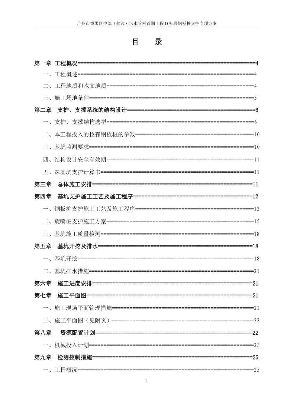 广州市番禺区中部(蔡边)污水管网首期工程D标段钢板桩支护专项方案1目录第一章工程概况=============================================================4一、工程概述=========================================...