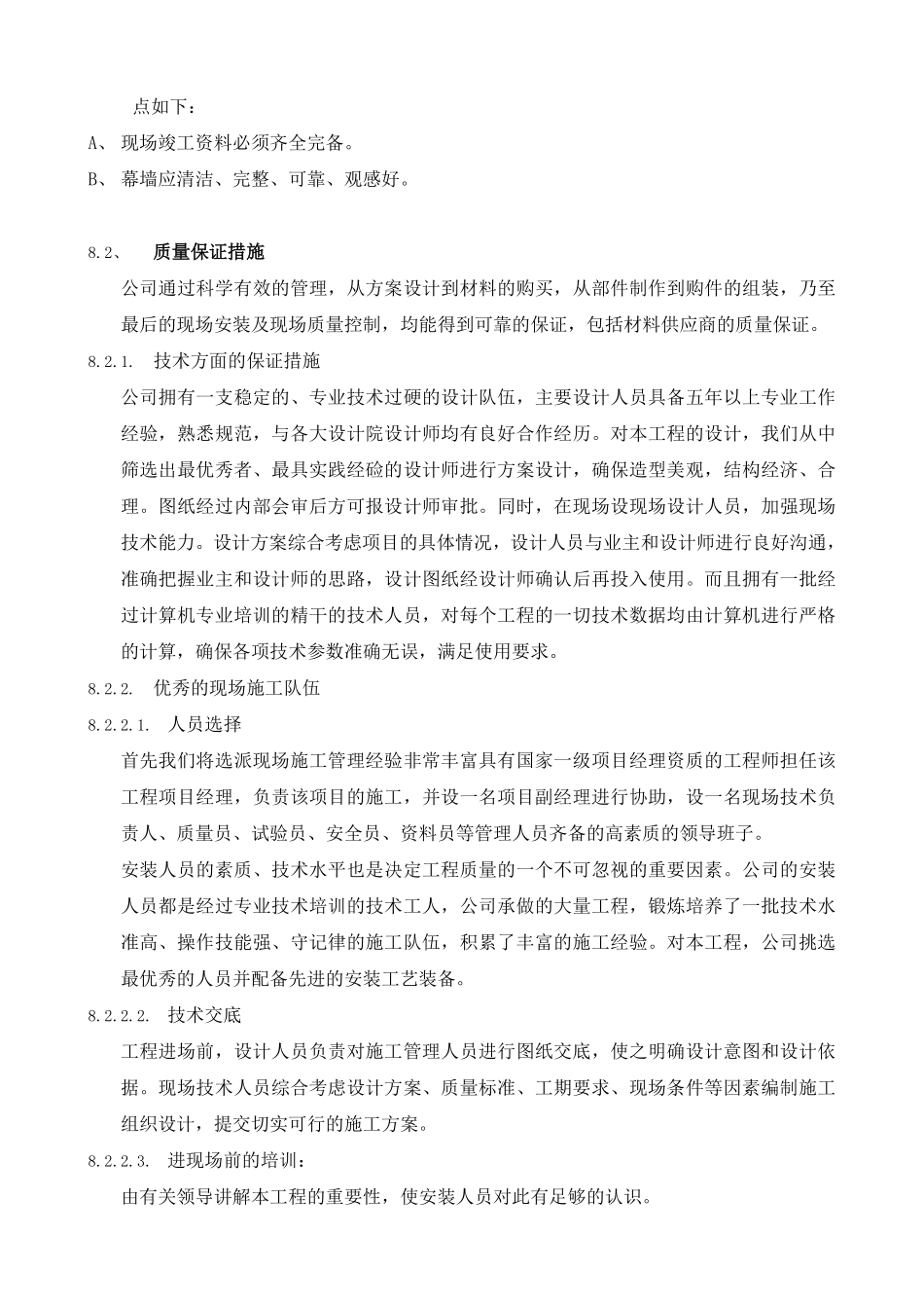 八、工程质量控制程序及质量保证措施公司始终遵循以“诚实、信誉、高效、进取”的服务理念赢得市场,确保将承接的每项工程打造成完美的精品,让业主放心,使用户满意。工程质量的好坏,直接关系到企业的存亡。公...