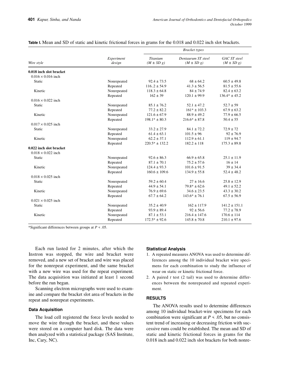 400Frictionalresistancehasbeenmeasuredandcomparedinstainlesssteel,titanium,ceramic,andplasticbrackets.1-16Mostofthestudiesintheliteraturehavereportedonfrictionalresistancewitheitheranon-repeated1,3...