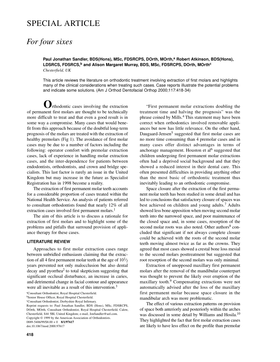 418Orthodonticcasesinvolvingtheextractionofpermanentfirstmolarsarethoughttobetechnicallymoredifficulttotreatandthatevenagoodresultisinsomewayacompromise.Manycasesthatwouldbene-fitfromthisapproachbe...