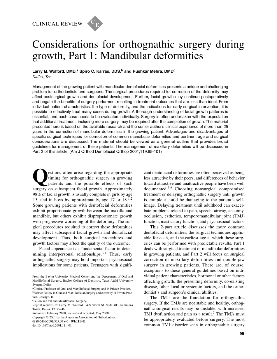 95Qestionsoftenariseregardingtheappropriatetimingfororthognathicsurgeryingrowingpatientsandthepossibleeffectsofsuchsurgeryonsubsequentfacialgrowth.Approximately98%offacialgrowthisusuallycompleteing...
