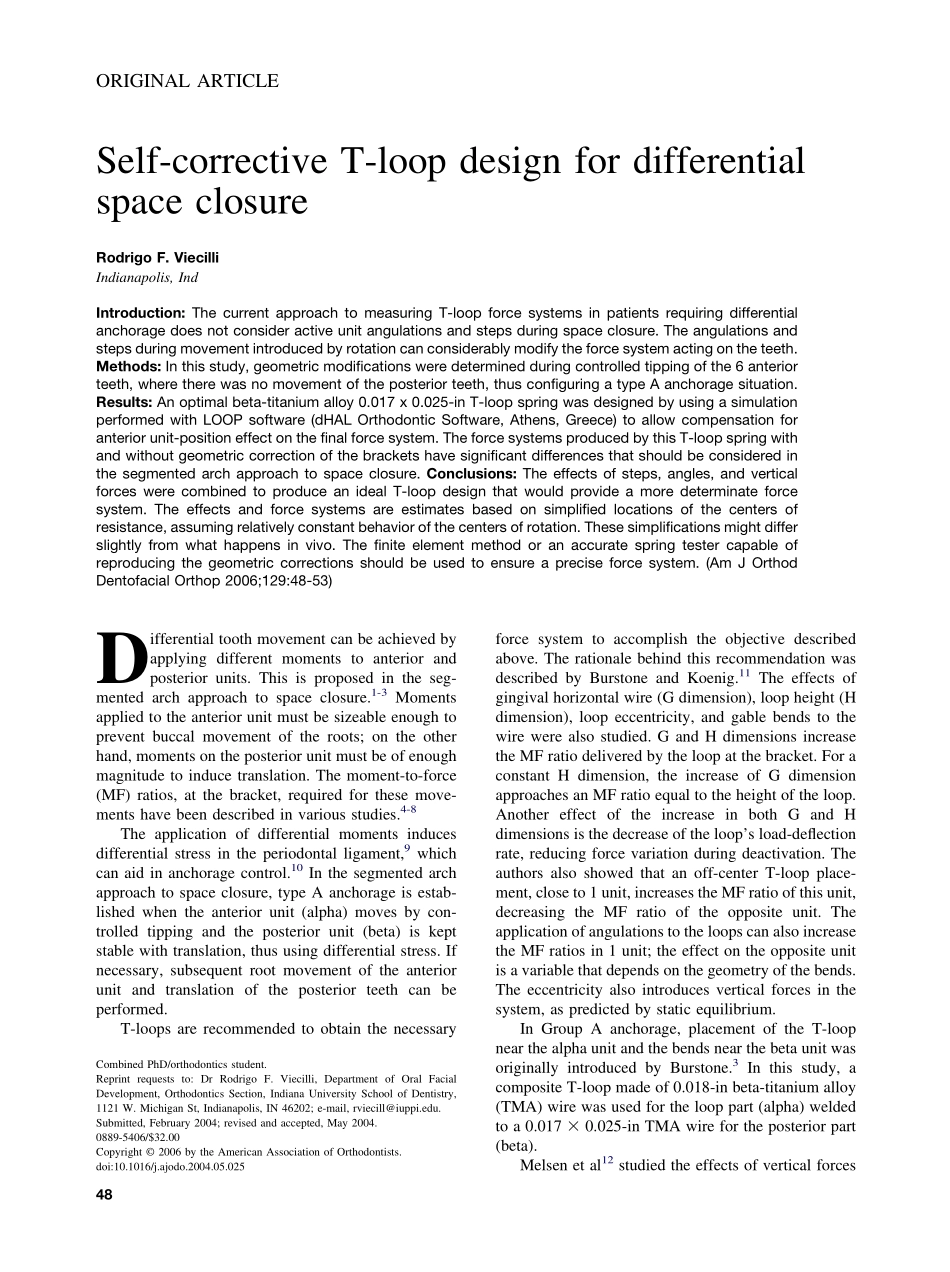 ORIGINALARTICLESelf-correctiveT-loopdesignfordifferentialspaceclosureRodrigoF.ViecilliIndianapolis,IndIntroduction:ThecurrentapproachtomeasuringT-loopforcesystemsinpatientsrequiringdifferentialanch...