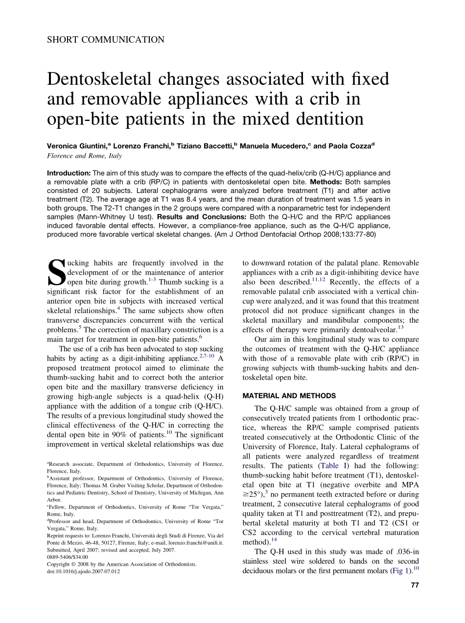 SHORTCOMMUNICATIONDentoskeletalchangesassociatedwithfixedandremovableapplianceswithacribinopen-bitepatientsinthemixeddentitionVeronicaGiuntini,aLorenzoFranchi,bTizianoBaccetti,bManuelaMucedero,cand...