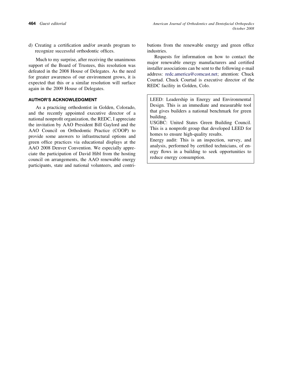 GUESTEDITORIALIsyourpracticeturninggreen?Itwillperformbetter,provideahealthierplacetowork,andmightevensavemoneyCharlesL.CourtadGolden,ColoOrthodontistsasagrouparecommunityleaderscapableofevaluating...