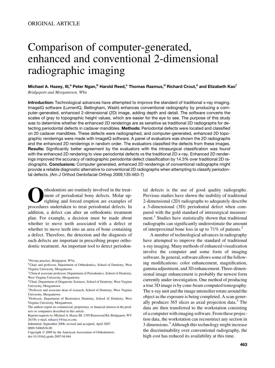 ORIGINALARTICLEComparisonofcomputer-generated,enhancedandconventional2-dimensionalradiographicimagingMichaelA.Hazey,III,aPeterNgan,bHaroldReed,cThomasRazmus,dRichardCrout,eandElizabethKaofBridgepor...