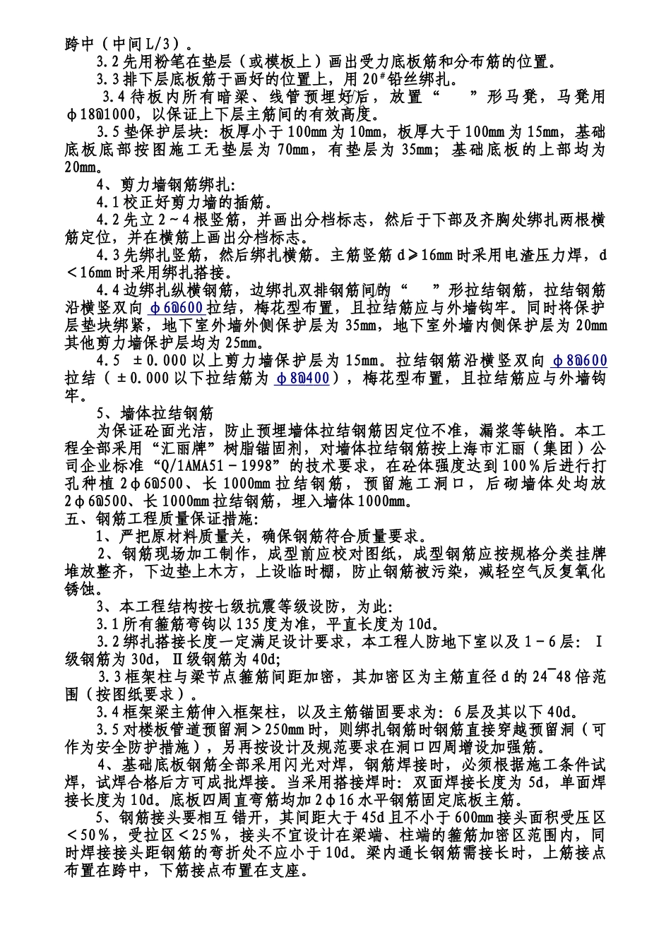 钢筋工程技术交底一、原材料要求:本工程全部采用国产钢筋,进场钢筋应有质量证明书和试验报告单,每捆钢筋应有标牌。对进场钢筋按规范的标准,由监理见证员(送样员)和取样员抽样送闸北测试中心做机械性能试验...