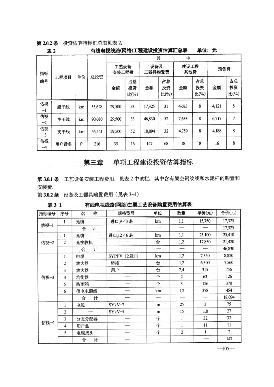 有线电视线路(网络)工程建设投资估算指标GY5211-1995---------  .pdf_第3页