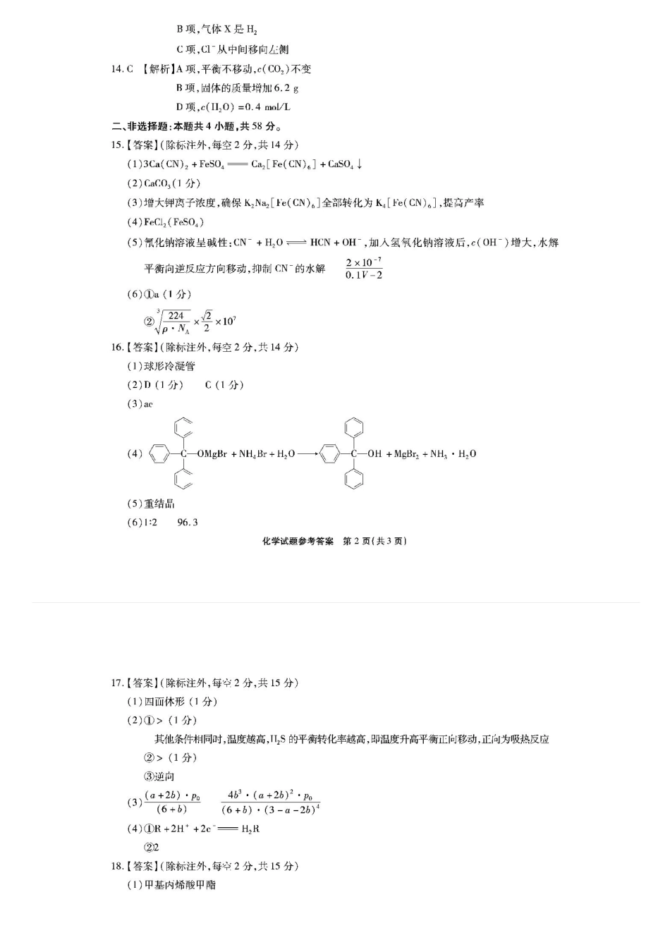2025重庆市南开中学高三第五次质量检测化学答案.pdf_第2页