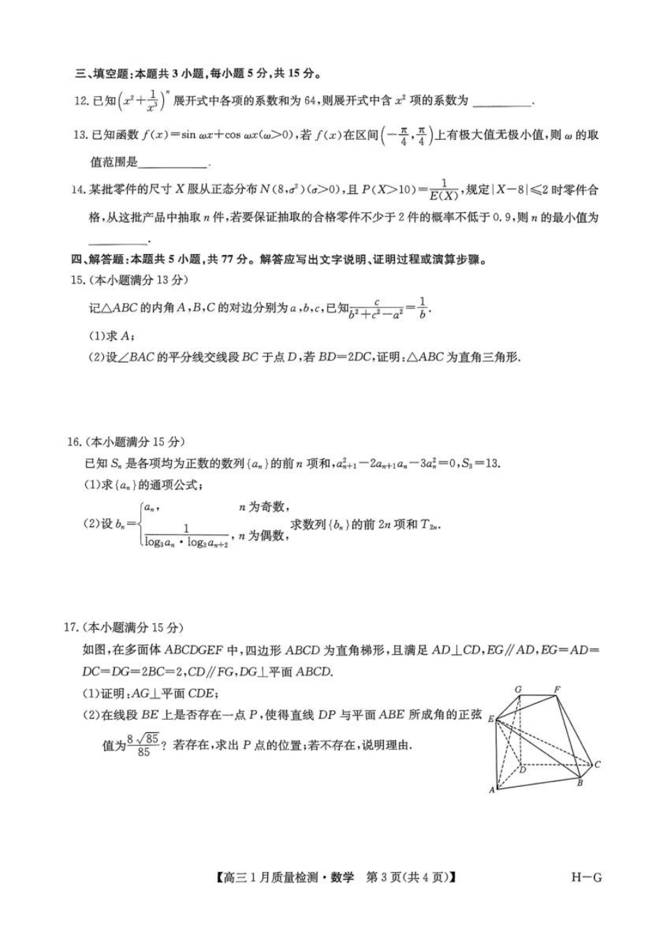 河南省名校联盟2024-2025学年高三上学期1月期末考试数学试题.pdf_第3页