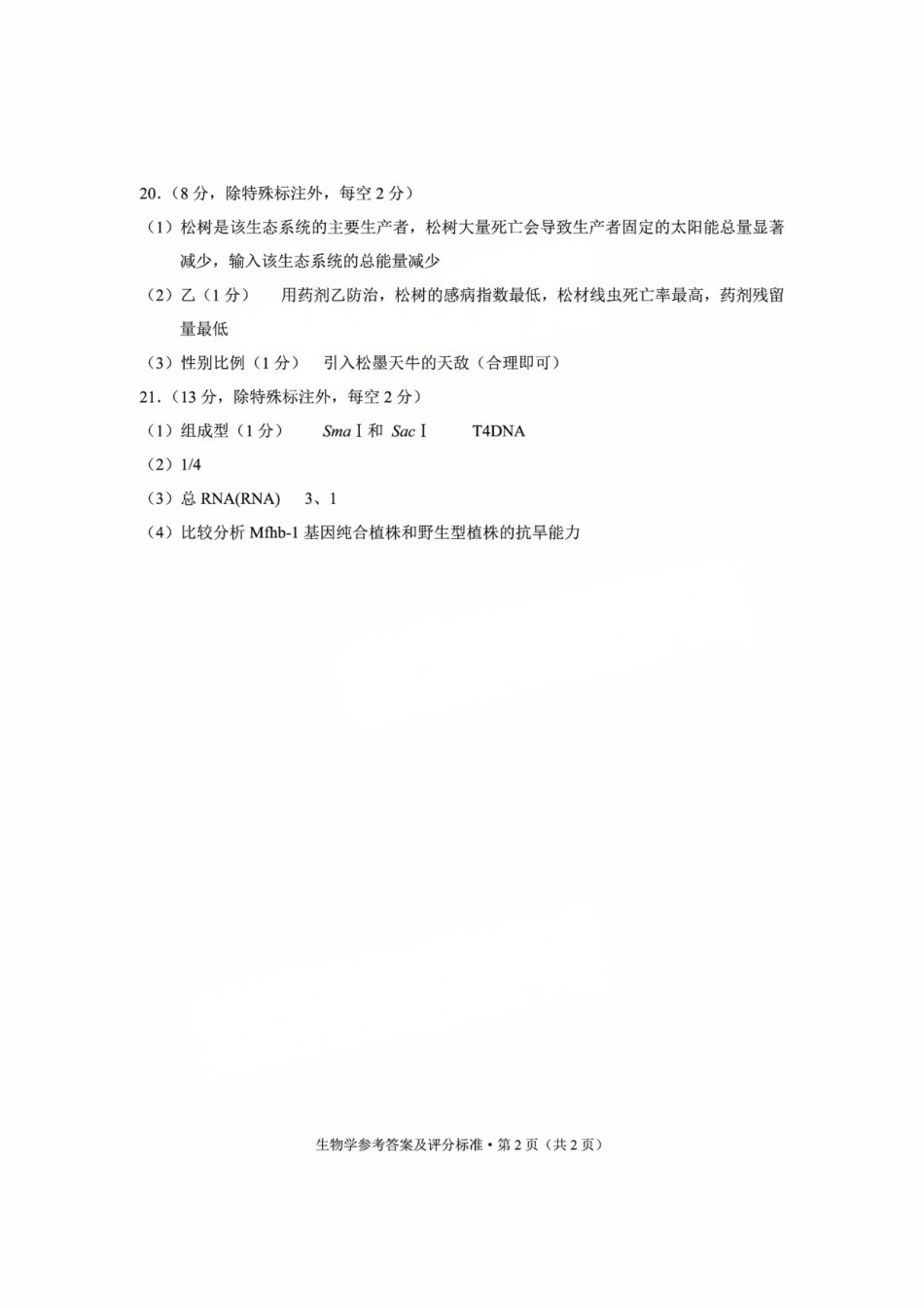 云南省昆明市2025届高三“三诊一模”摸底诊断测试生物答案.pdf_第2页
