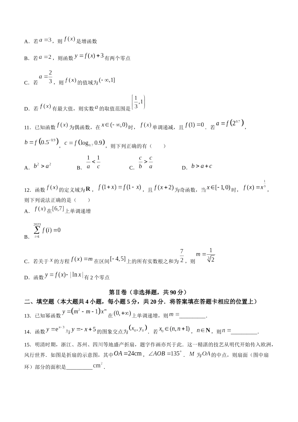 哈三中2023—2024学年度上学期高三学年第二次验收考试数学试卷考试说明:(1)本试卷分第Ⅰ卷(选择题)和第Ⅱ卷(非选择题)两部分,满分150分.考试时间为120分钟;(2)第Ⅰ卷,第Ⅱ卷试题答案均答在答题卡上...
