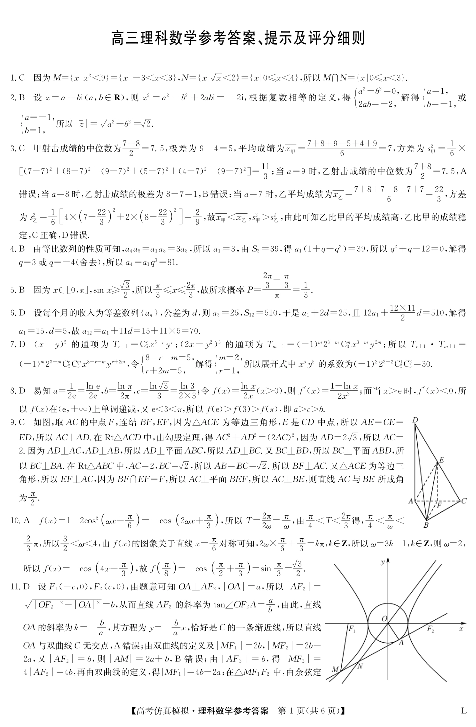 九师联盟5月仿真模拟测试(老高考老教材)数学理答案-高考仿真模拟(老教材).pdf