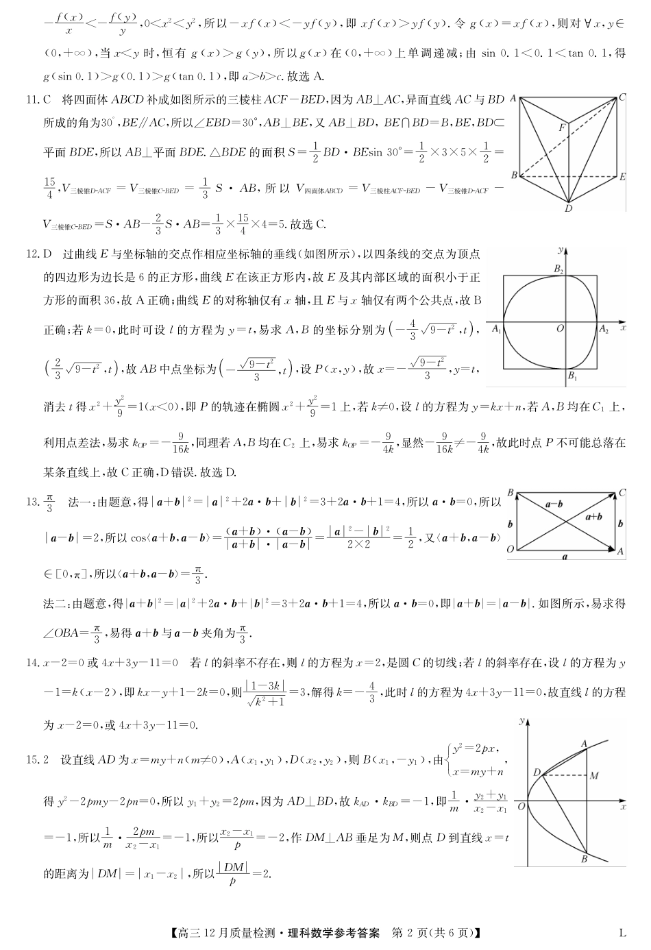 九师联盟2023届高三12月质量检测(老高考)数学理答案.pdf_第2页