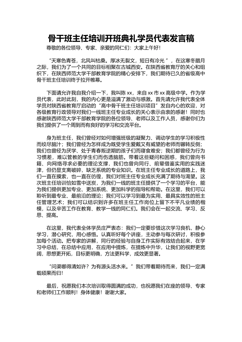 骨干班主任培训开班典礼学员代表发言稿.docx