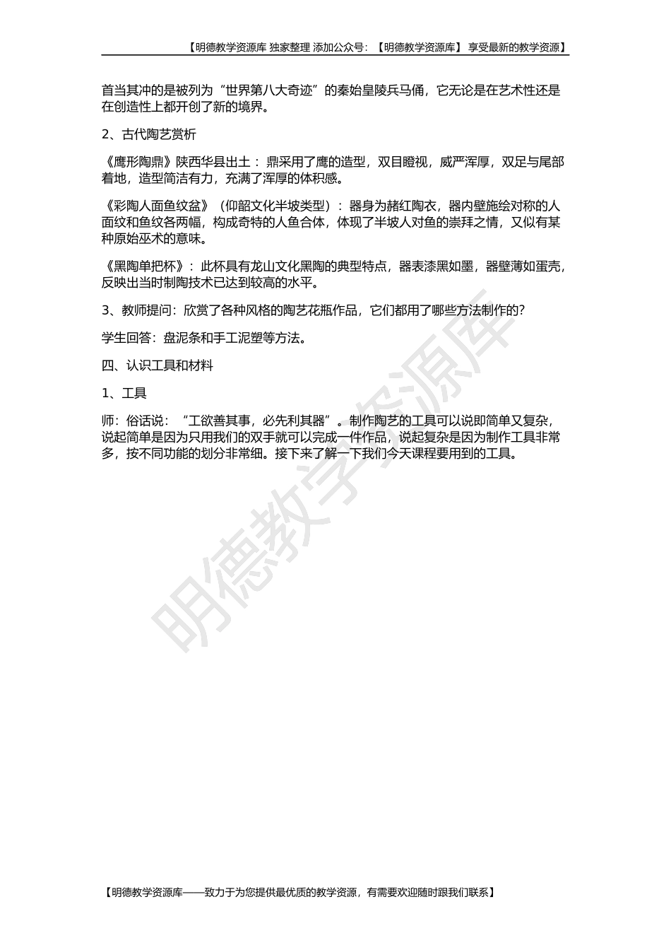 【明德教学资源库独家整理添加公众号:【明德教学资源库】享受最新的教学资源】《魅力陶艺世界》一、教材分析我国是一个具有千年历史文化传统的国家,在这伟大的国度里有着无数的传统文化瑰宝,陶艺就是其中之一...