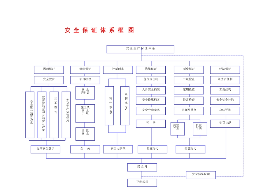 安全保证体系框图安全生产保证体系措施保证包保责任制人身安全档案五防安全劳动竞赛安全设施档案制度保证二级检查定期检查抓好两重点经常检查经济保证经济责任制工资挂钩奖罚兑现总结评比安全奖金挂钩高空作业机...