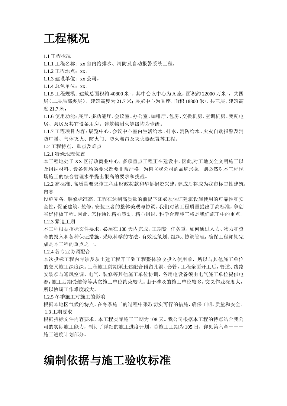目录第一章工程概况...............................................................2第二章编制依据与施工验收标准.................................................4第三章项目管理目标......................