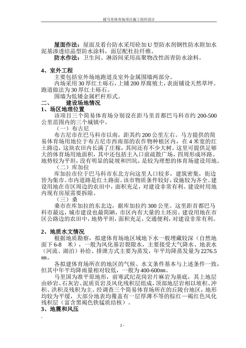 2025年精选优质工程资料:马里体育场施工组织设计.doc_第2页