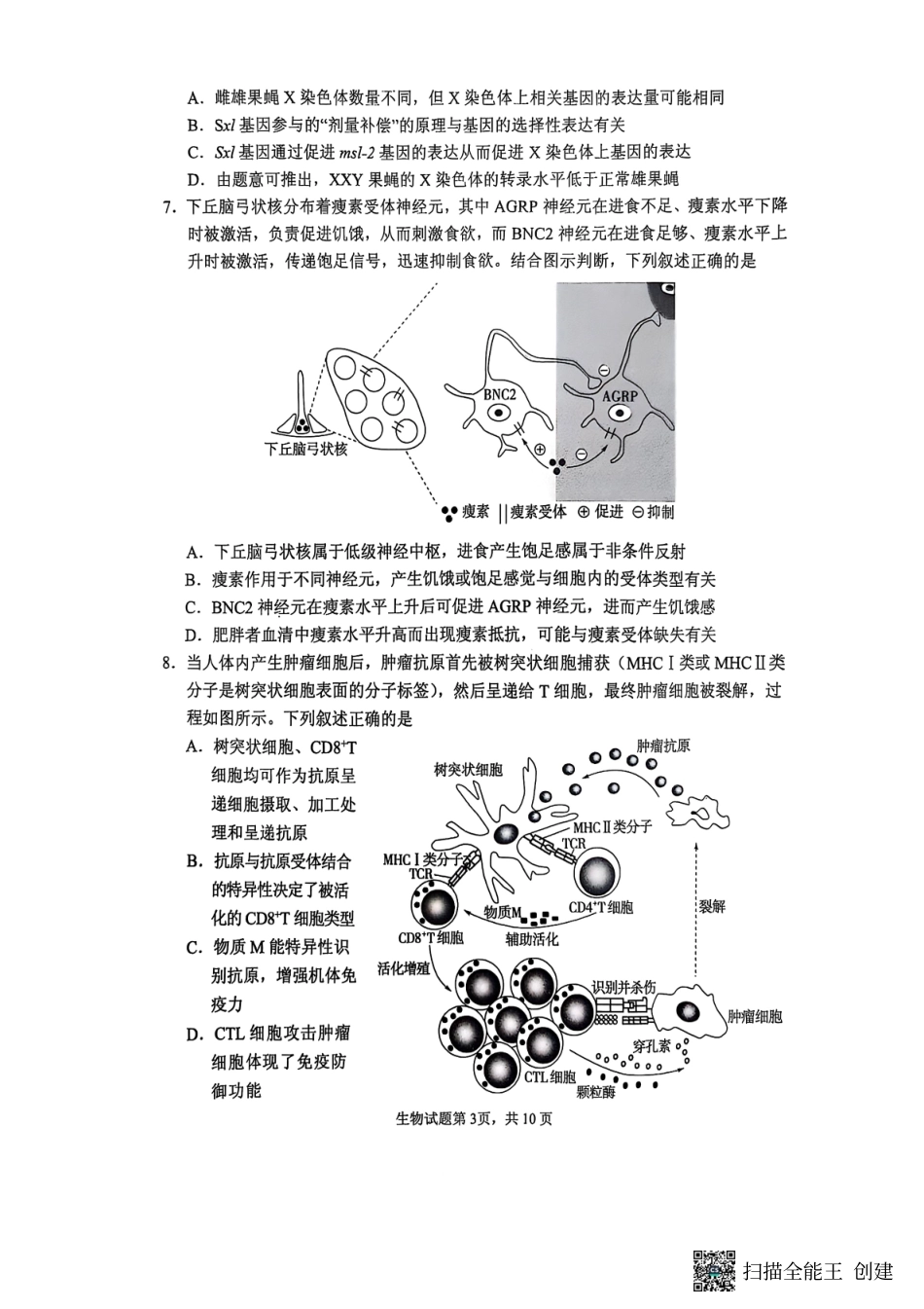2025届山东省实验中学高三下学期第四次诊断考试生物试题.pdf_第3页
