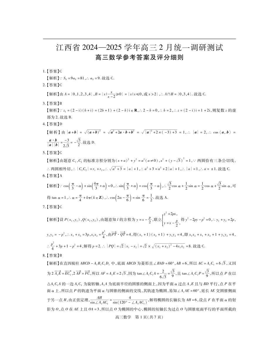江西省上进联考2024-2025学年高三下学期2月统一调研测试数学答案 (1).pdf_第3页