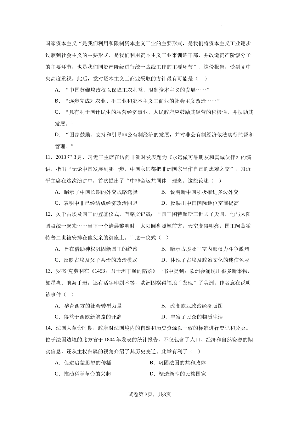 宁夏石嘴山市第一中学2024-2025学年高三上学期1月期末历史试题.docx_第3页