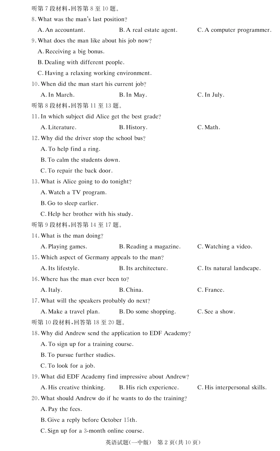 炎德英才大联考长沙市一中 2025 届高三月考试卷(六)英语试题.pdf_第2页