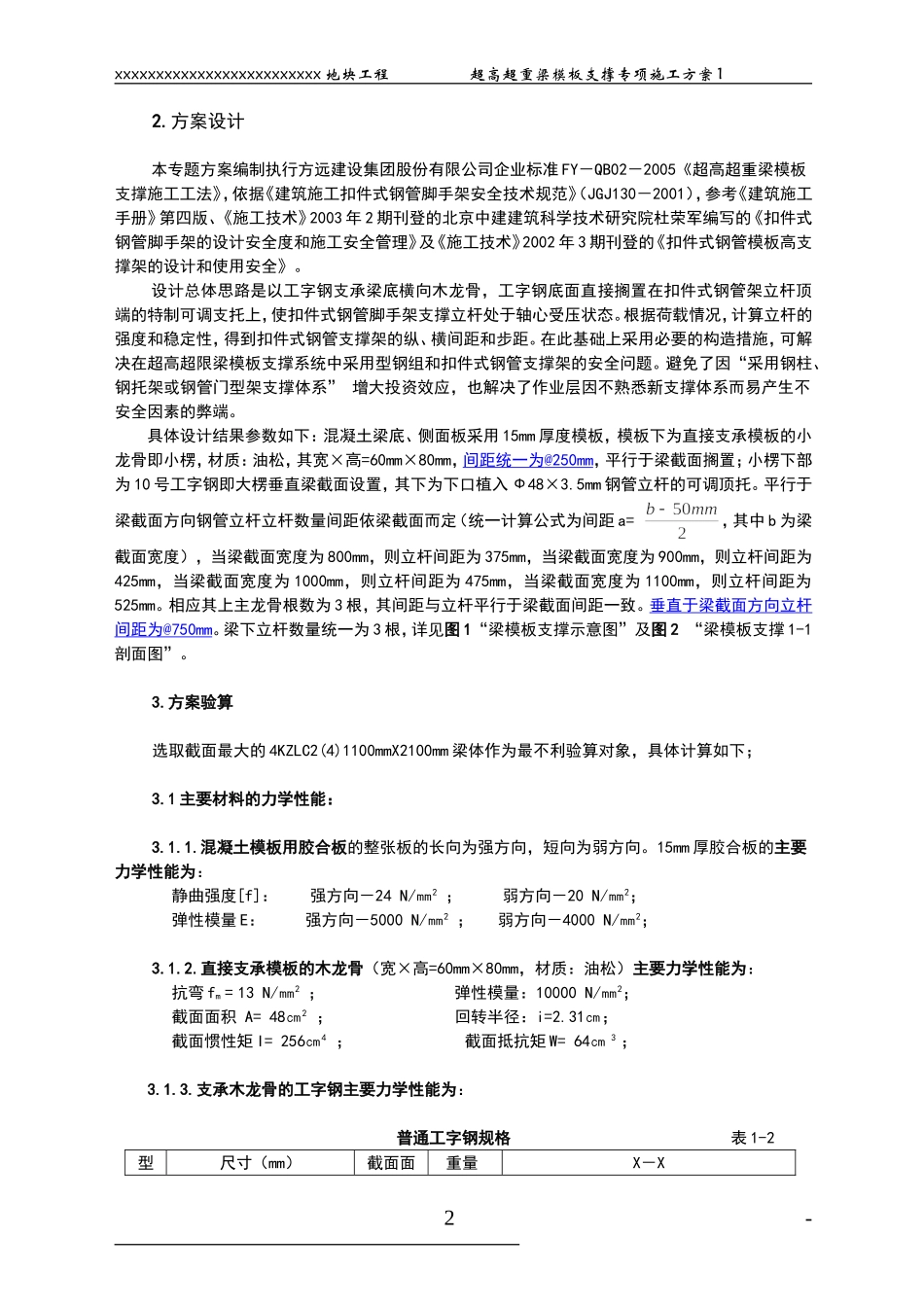 xxxxxxxxxxxxxxxxxxxxxxxxx地块工程超高超重梁模板支撑专项施工方案1超高超重梁模板支撑专项施工方案一1.引言对于工程施工中出现的“水平混凝土构件模板支撑系统高度超过8m,或跨度超过18m,或施工总荷载大于10kN...