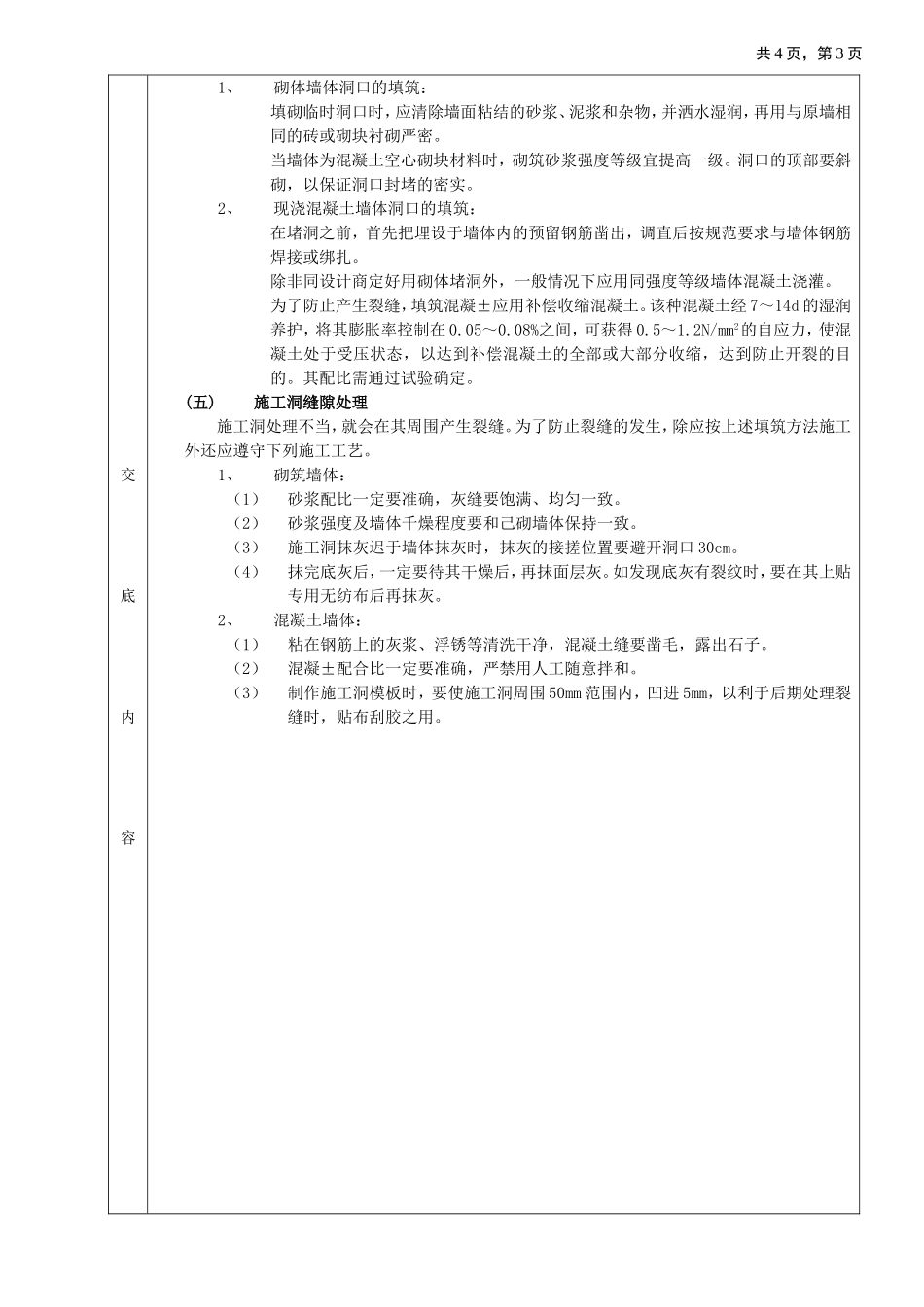 共4页,第1页施工洞的留置及处理分项工程质量技术交底卡GD2301003施工单位工程名称分部工程交底部位日期年月日交底内容在建筑工程施工中,为了解决建筑物内施工时物料的横向运输问题,凡设计设有设通道,且工程较...
