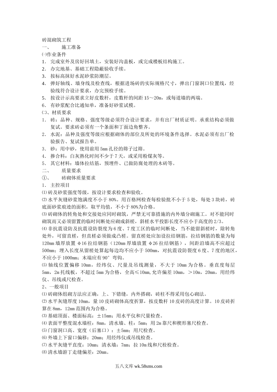 砖混砌筑工程技术交底