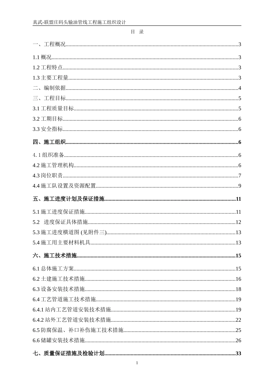 真武-联盟庄码头输油管线工程施工组织设计工程编号:08168施工单位:江苏石油勘探局油田建设处监理单位:局工程监理部编制:审核:审核:建设单位:江苏油田试采一厂审定:审批:日期:日期:编制日期:二00九年...