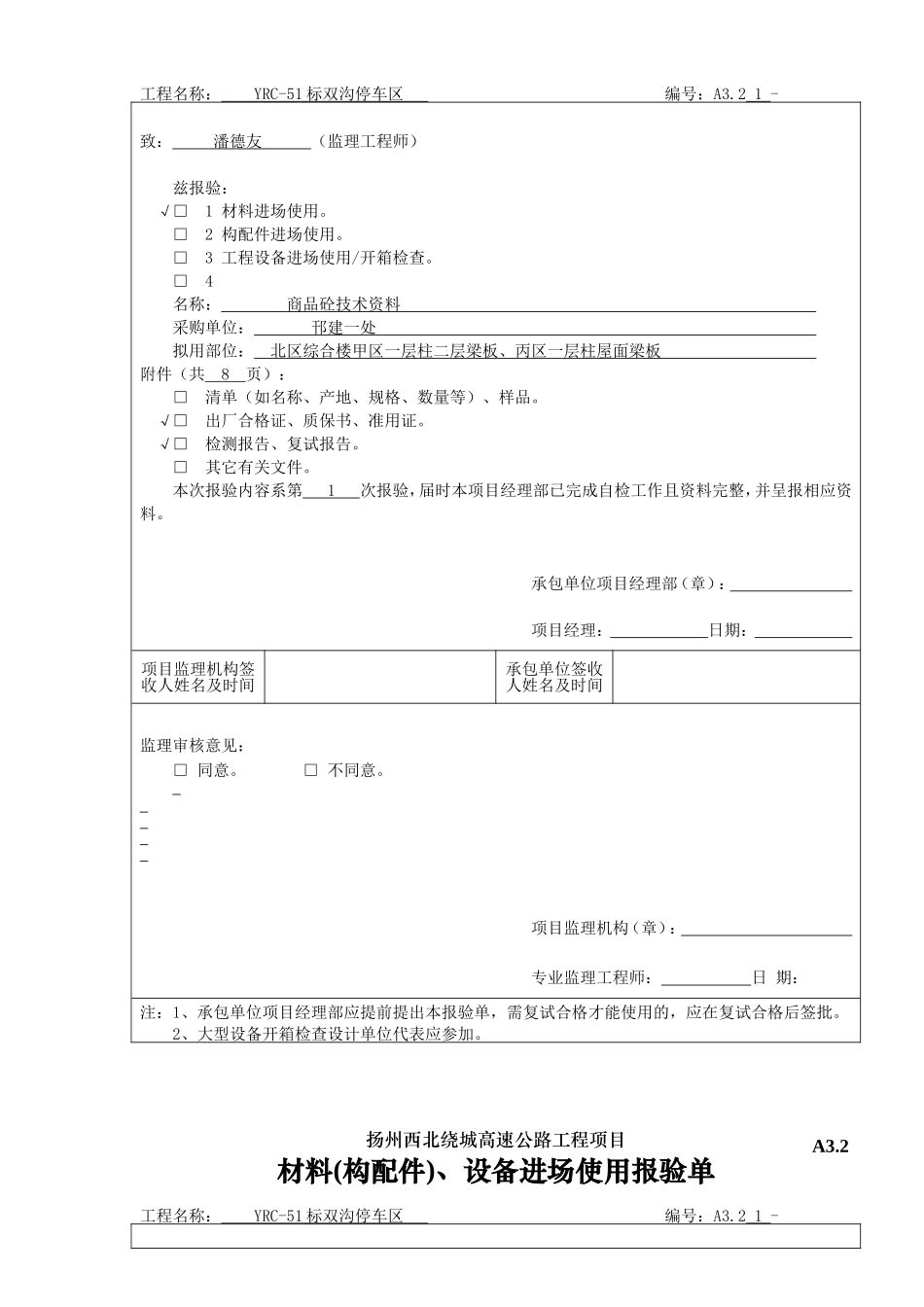 2025年工程建设资料:A3.2材料设备报验.doc_第1页