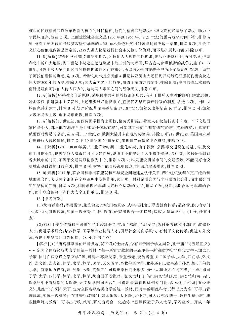 百师联盟2025届高三开年摸底联考历史答案J.pdf_第2页