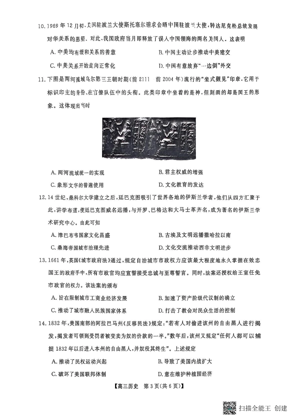 河南省部分学校2024-2025学年高三下学期2月质量检测历史试题.pdf_第3页