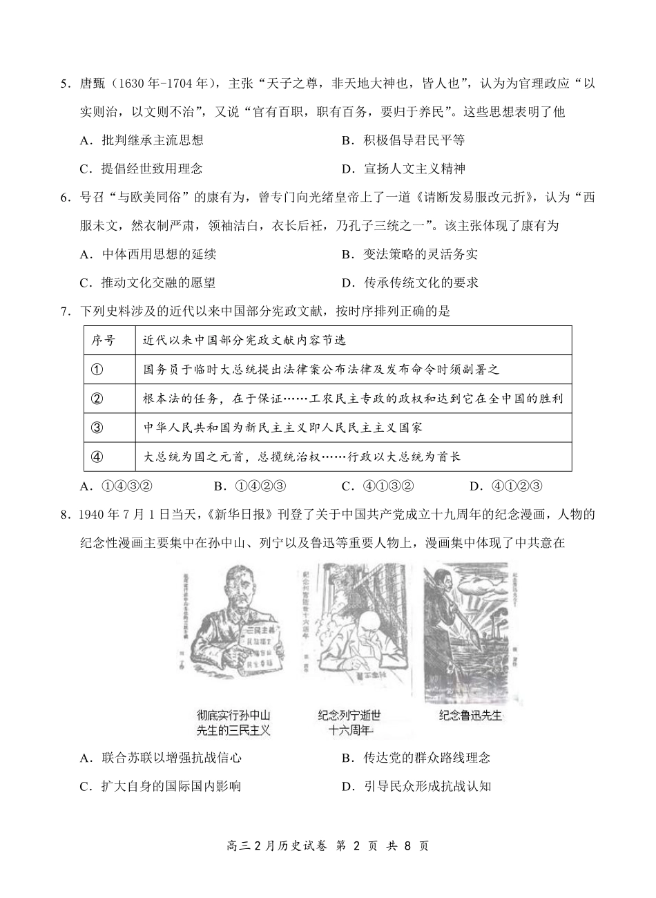 湖北省云学名校联盟2025届高三年级2月联考历史试题.pdf_第2页