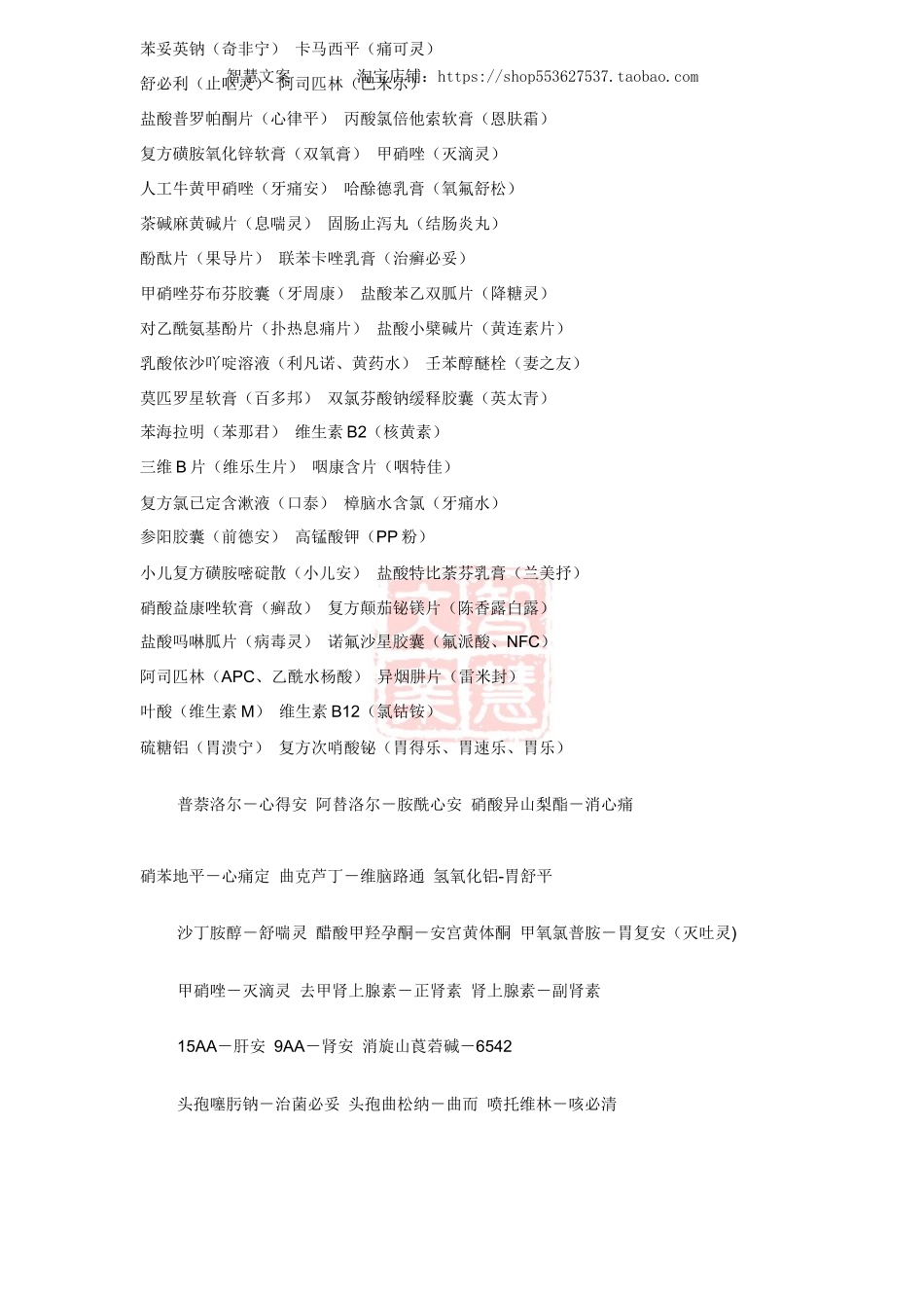 智慧文案淘宝店铺:https://shop553627537.taobao.com呋喃唑硐(痢特灵)盐酸吗啉呱(ABOB)呋塞米(速尿)肾上腺色腺(安络血)醋酸甲荼氢醌(K4)醋酸泼尼松(强的松)甲巯咪唑(他巴唑)马来酸氯苯那敏(扑尔...