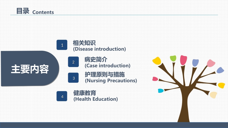 普外科贲门癌伴脓胸、吻合口瘘护理查房主讲人:王琦11相关知识(Diseaseintroduction)22病史简介(Caseintroduction)33护理原则与措施(NursingPrecautions)目录Contents主要内容主要内容44健康教育(HealthEducation...
