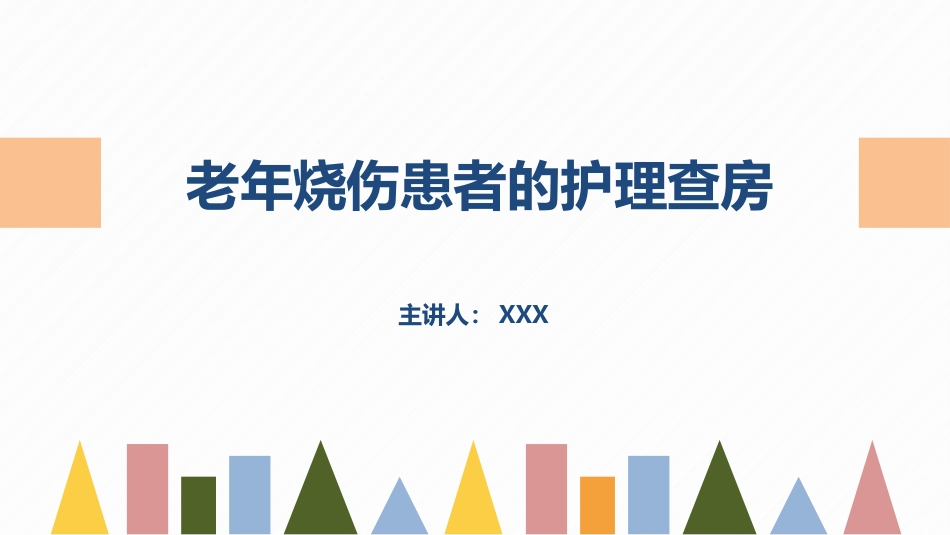 老年烧伤患者的护理查房主讲人:XXX主要内容1疾病介绍(Diseaseintroduction)2病史简介(Caseintroduction)3护理问题与措施(NursingPrecautions)4健康宣教(Healtheducation)11疾病介绍(Diseaseintroduction)烧伤是...