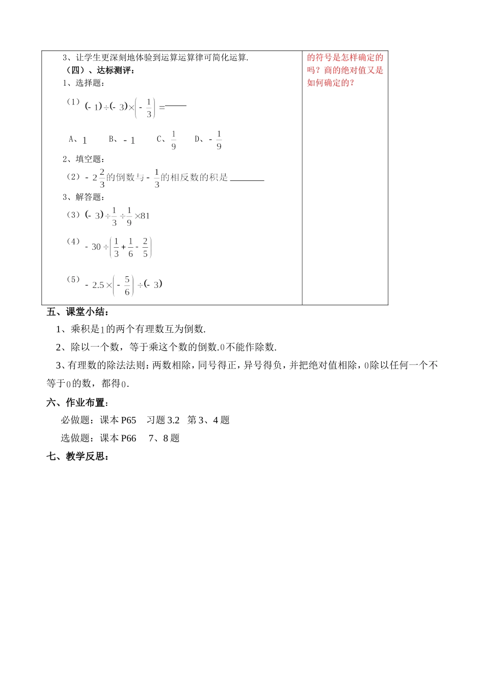 【七年级上册数学青岛版导学案】《有理数的乘法与除法(3)》教学案.doc_第3页