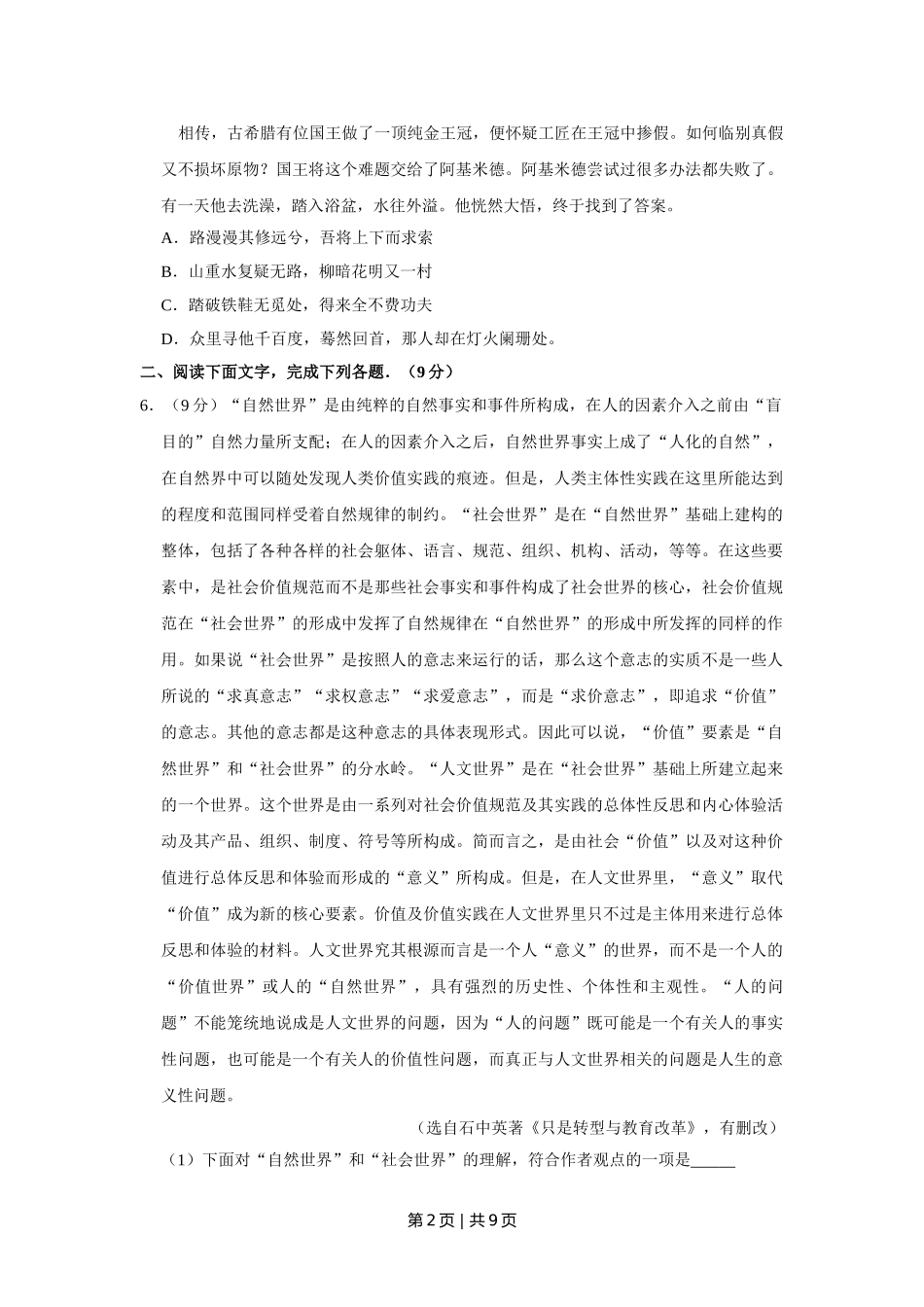 (官方发布)2015年高考语文真题(天津)(空白卷).doc_第2页
