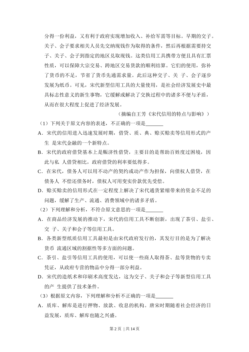 (官方发布)2015年高考语文真题(新课标Ⅰ卷)(空白卷).docx_第2页