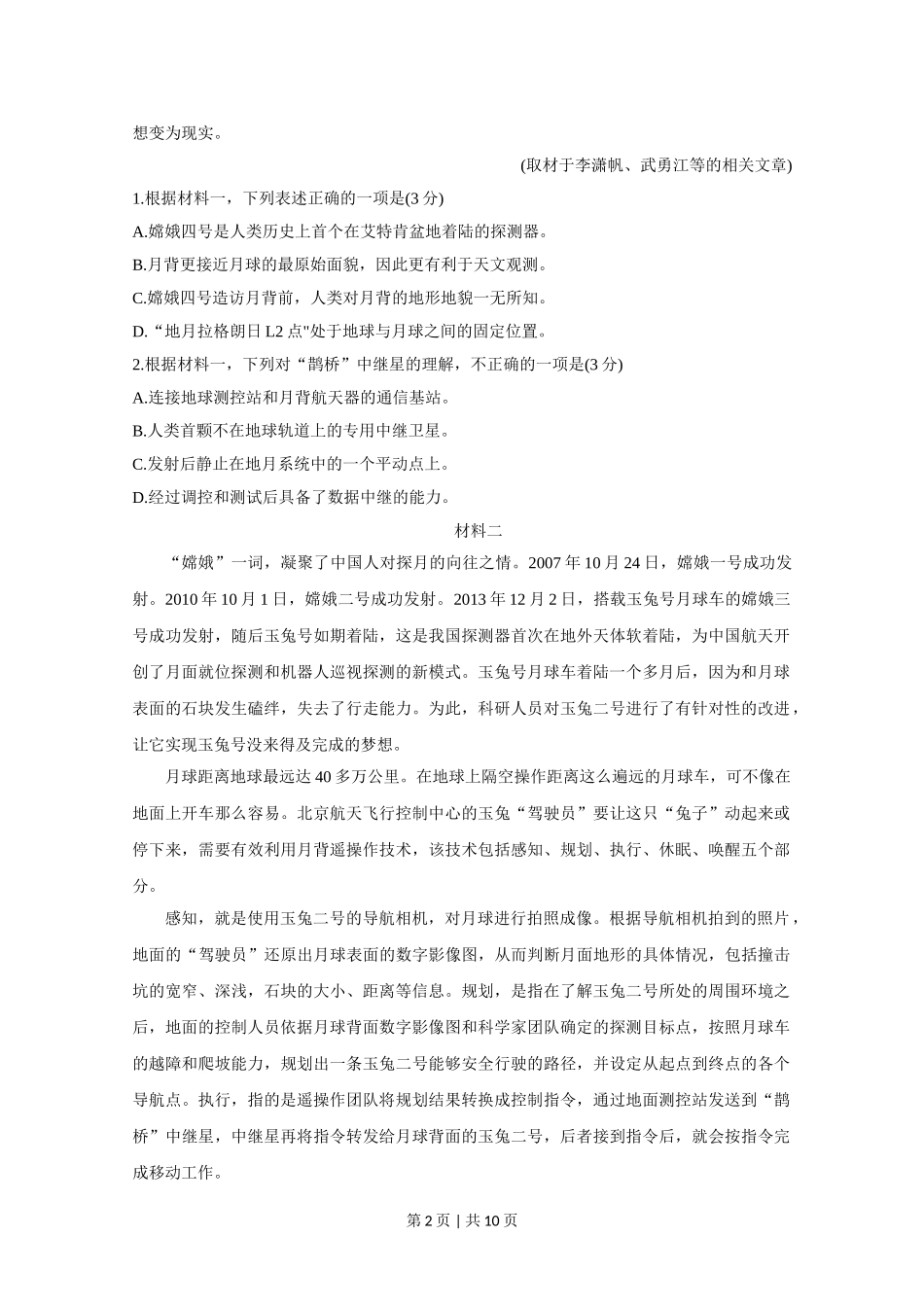 (官方发布)2020年高考语文真题(北京)(空白卷).doc_第2页