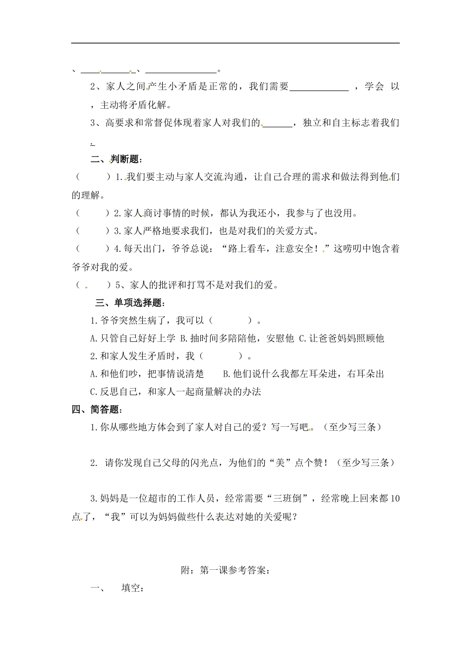 第一单元我们一家人【单元导读】本单元有三课内容,即第1课《读懂彼此的心》,第2课《让我们的家更美好》,第3课《弘扬优秀家风》。【单元课标】1、引导学生懂得用心体会家人的爱,理性面对问题,主动与家人交流...