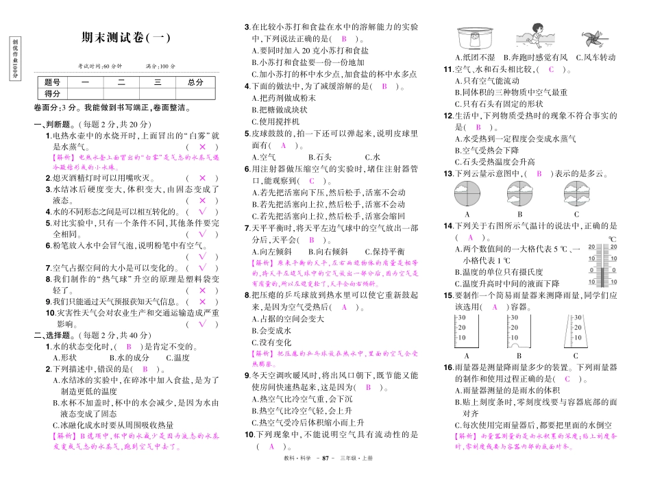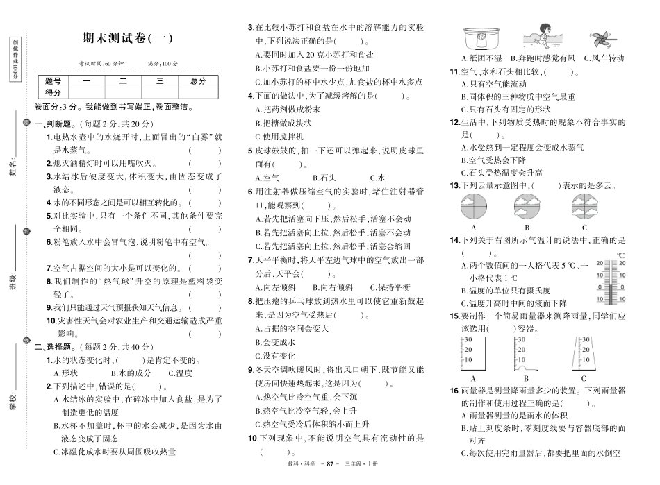 教科􀅰科学-87-三年级􀅰上册期末测试卷(一)考试时间:60分钟满分:100分􀪋􀪋􀪋􀪋􀪋􀪋􀪋􀪋􀪋􀪋􀪋􀪋􀪋􀪋􀪋􀪋􀪋􀪋􀪋􀪋􀪋􀪋􀪋􀪋􀪋􀪋􀪋􀪋􀪋􀪋􀪋题号一二三总分得分卷面分:3分ꎮ我能做到书写端正ꎬ卷面整洁ꎮ一...