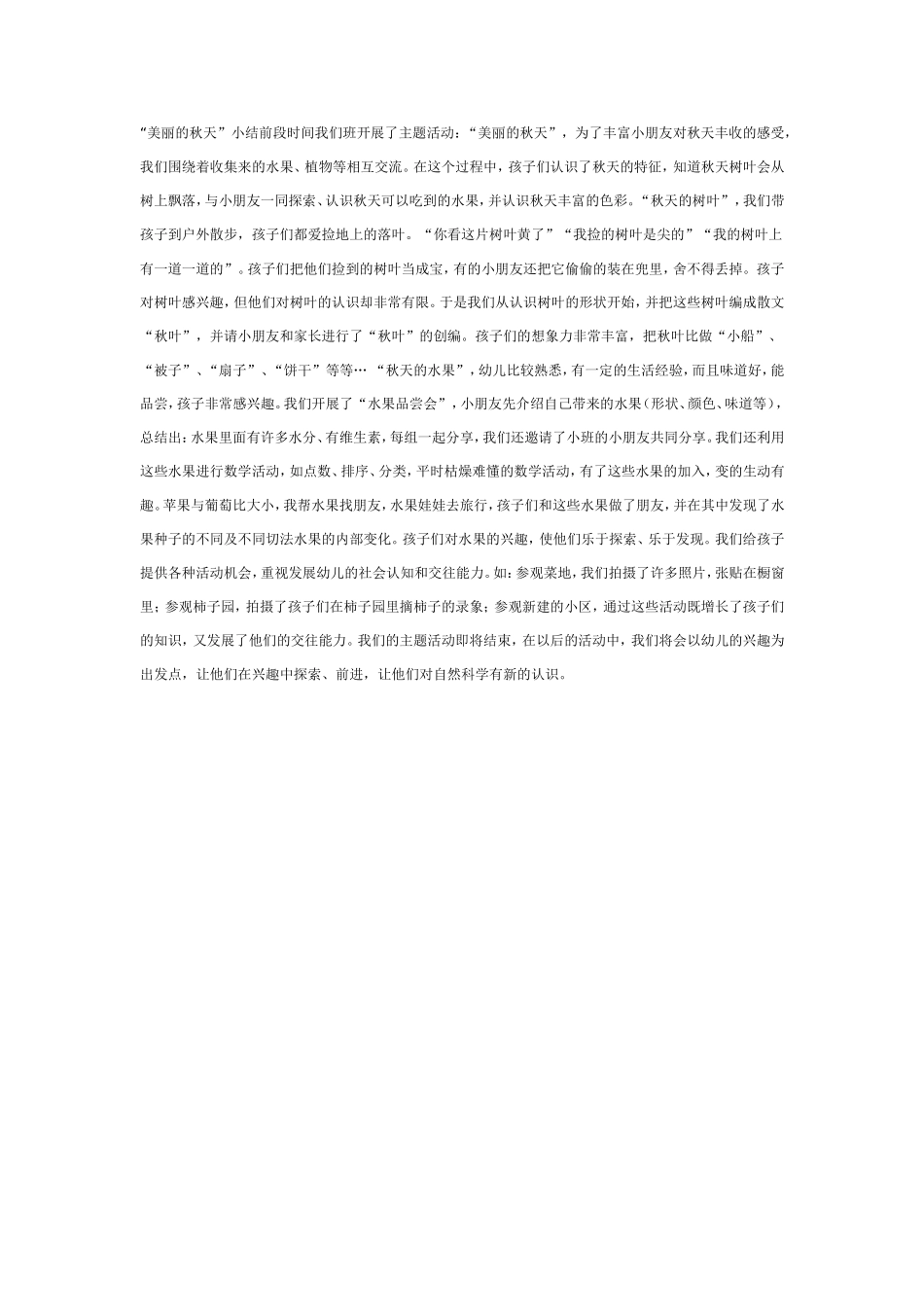 2025年最新儿童绘本故事:主题活动:“美丽的秋天”小结.doc